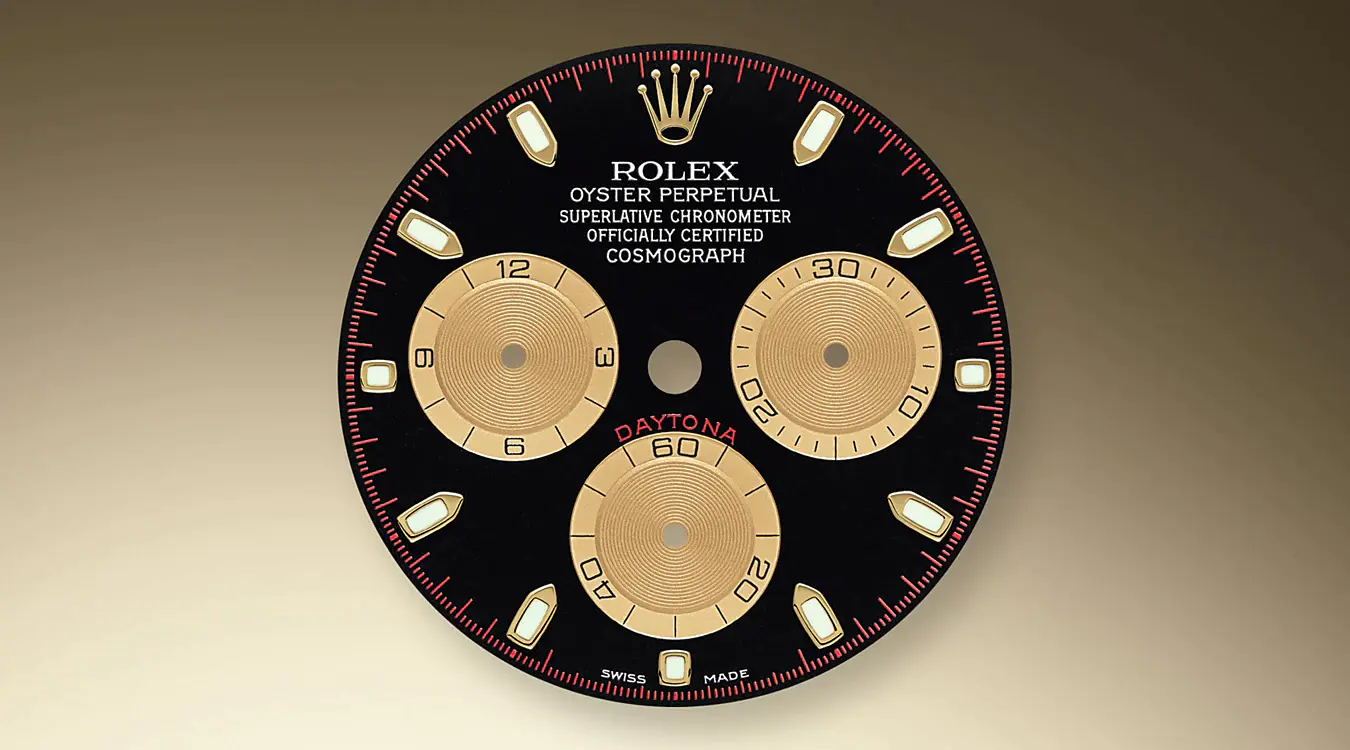 A key part of the model’s identity is the bezel moulded with a tachymetric scale for measuring average speeds of up to 400 miles or kilometres per hour. Blending high technology with sleek aesthetics, the black bezel is reminiscent of the 1965 model that was fitted with a black Plexiglas bezel insert.
